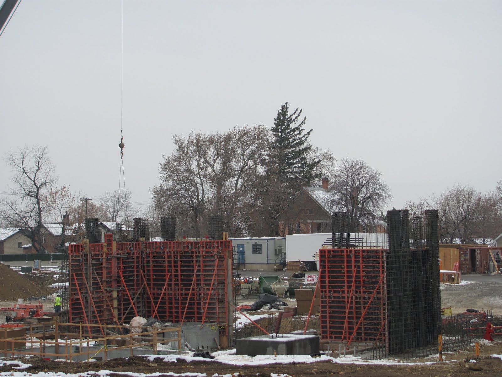 I happened to stop by the temple site today and got these photos. The workers were stripping the forms from the southwest corner walls. I saw them pouring the concrete with 2 pump trucks on Thursday. I have to admit that I am fascinated by the construction process.