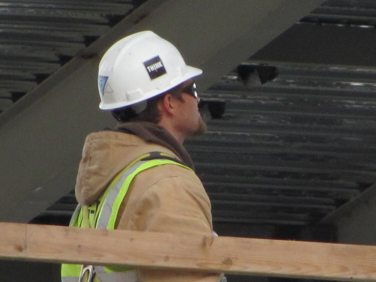 | Someone apparently made a miscalculation and the workers had to cut this beam so the exterior panel would fit |